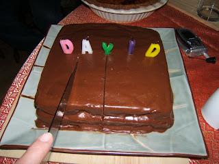 I got a recipe of this cake called “The best chocolate cake ever” and made it for David on his birthday, he was thrilled. It was extremely YUMMY! Dave just turns 31, and he’s enjoying being a dad. I also made him a pumpkin pie that he’s been asking for for ages and that was a big surprise for him. Big thanks to Fiona with her help, everything turned out well!